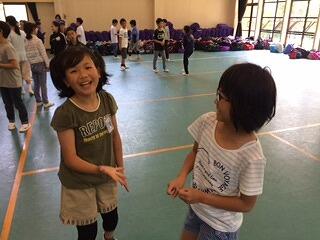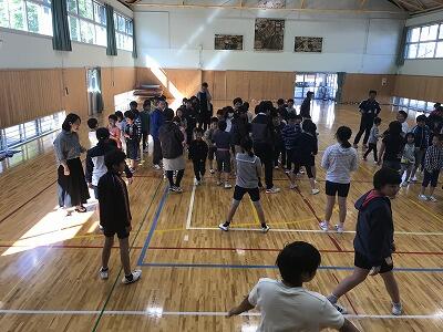 今日は、新体力テストのための全校体育が行われました。上学年と下学年がペアになり体力テストを行います。9日(水)が本番です。