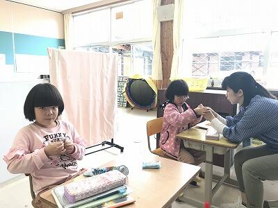 1年生の図工の時間です。「いろいろなかたちのかみから」という内容の授業です。楽しそうに創作活動に取り組んでいました。参観日で見ることができると思います。
