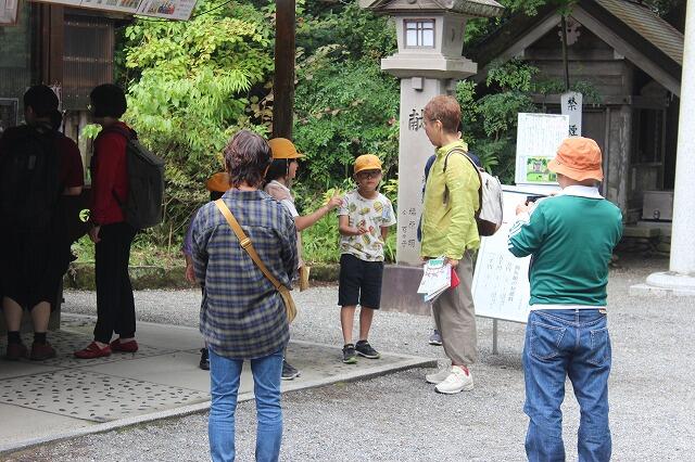 10月16日(水)に天岩戸神社西本宮の境内で3年生が総合的な学習の時間でスタンプラリーを実施しました。スタンプラリーとは、手作りのカードを作って、それを観光客に配布し、徴古館・斎館、社務所、本殿、神楽殿の前で児童の説明を聞いたら、手作りのシールをもらえるというものです。このことによって、岩戸のことを観光客の方々により深く知ってもらおうという目的で今日までいろいろ準備してきました。観光客の方々は、真剣に説明を聞いてくださいました。また、この活動をたくさんの保護者が見守ってくださいました。ご協力ありがとうございました。岩戸地区を活性化するよい活動ができました。