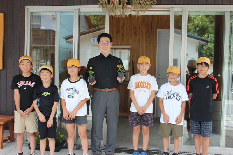 7月4日(木)に岩戸っ子委員会で「あまてらす館」に花を届けに行きました。花の種類はマリーゴールドで、校長先生の指導の下、子どもたちで移植作業をしながら育ててきました。休日等でお世話になっている「あまてらす館」が少しでも明るくなり、地元の人や観光客の心を癒やしてくれるといいです。