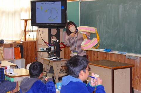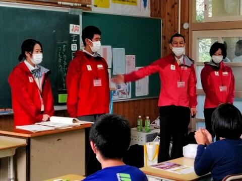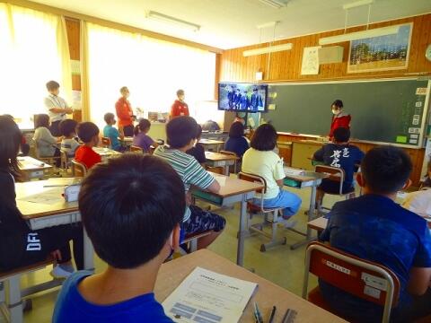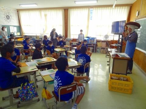 ◎6年生は、町内の干ししいたけ専門問屋の代表取締役社長からキャリア教育について学びました。