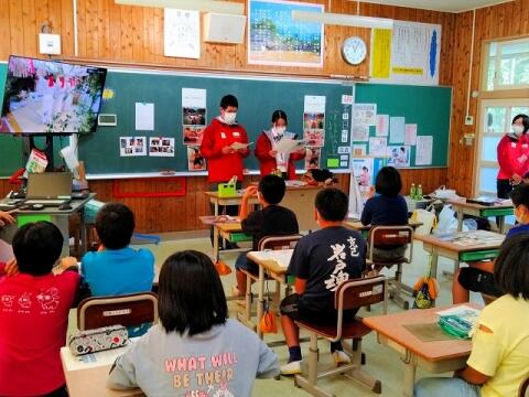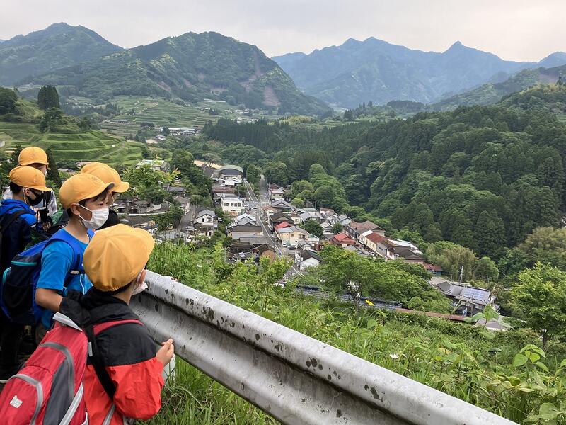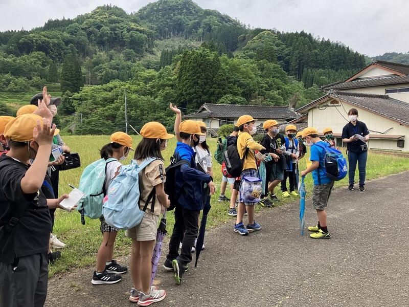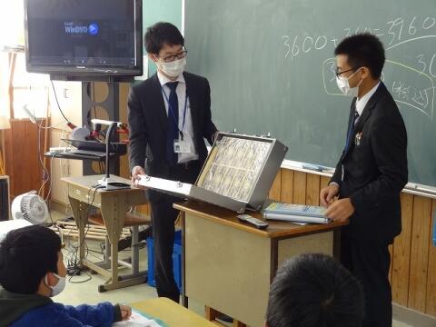 ◎5年生は、高千穂高等学校の生徒から「世界農業遺産」について学びました。