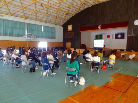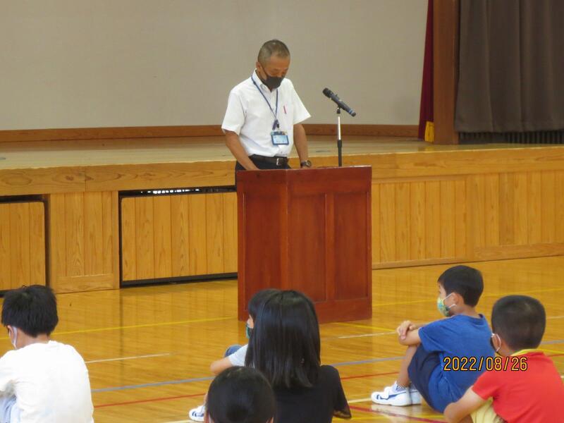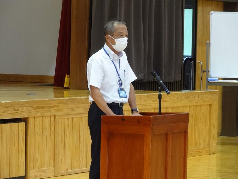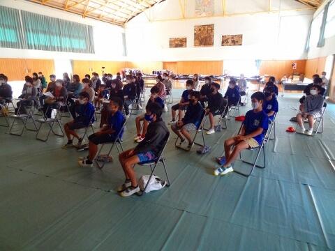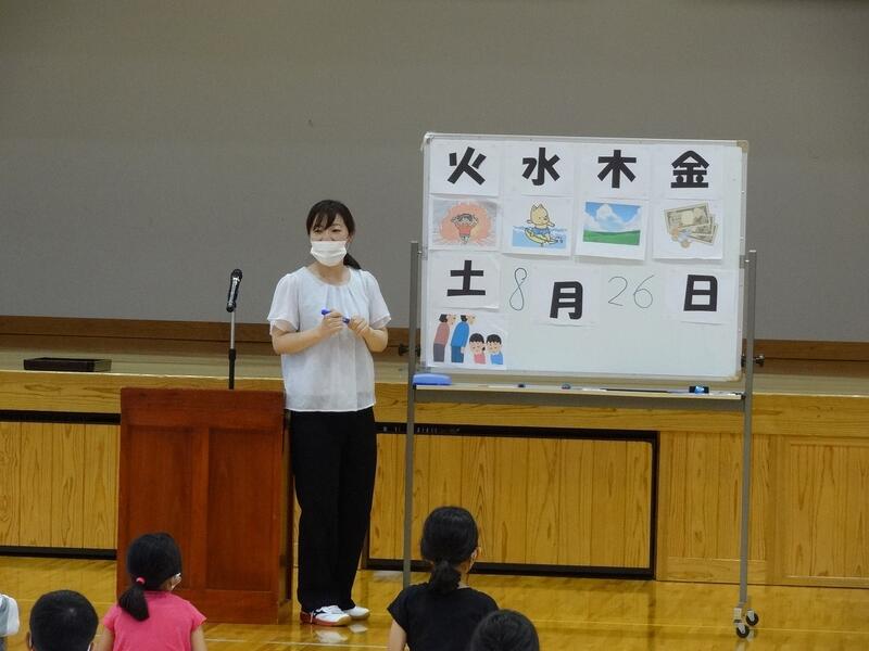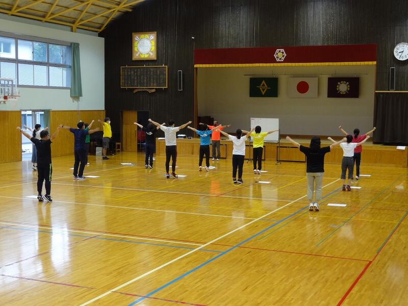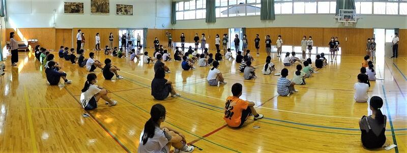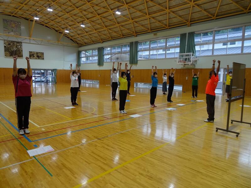8月25日(木) 明日からの2学期を前に、押方校長を講師にラジオ体操についての研修を行いました。手や足の力の入れ具合、なぜの伸ばすのか、なぜ声を発するのかなど、一つ一つの動きの意味や動かし方のコツを教わりました。動きの意味が分かると、一人一人の動きがそろってきれいなラジオ体操になりました。運動会では子どもたちの動きのそろったラジオ体操が見られそうです。
