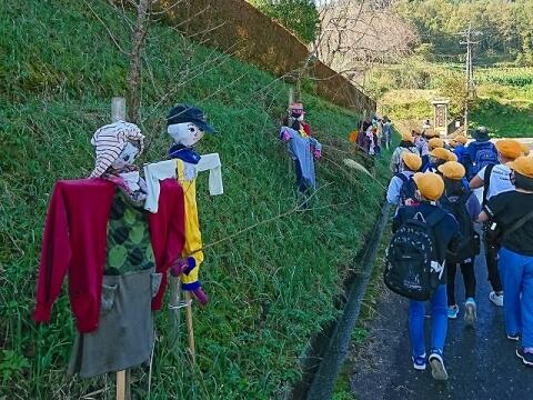 ◎途中にかかしがたくさん立っていました。