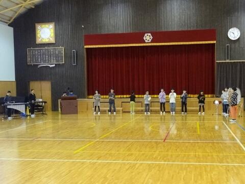 9月16日(木) 今日は運動会練習の第2回全校体育でした。昨夜まで雨が降っていましたが、なんとか運動場で実施することができました。開会式と閉会式、エールの交換の練習をしました。