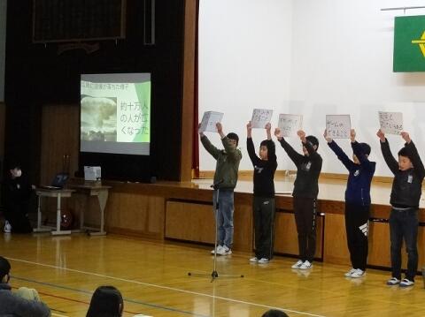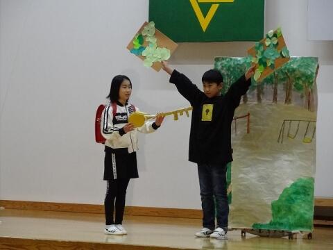 全校朝会(1・5年発表)