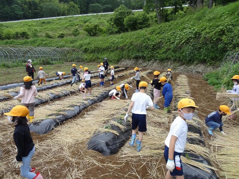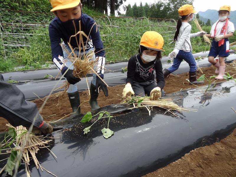 ◎みんなで協力してビニールかけました。