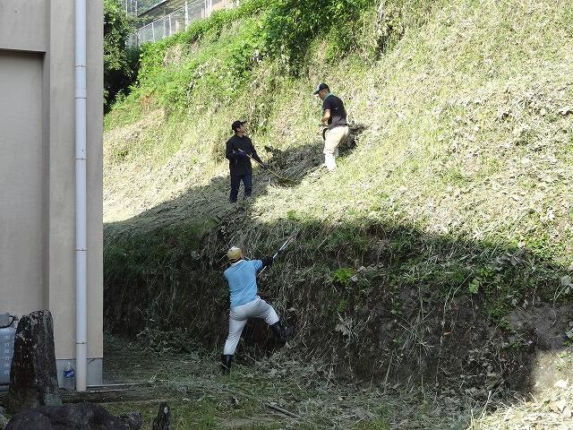 ◎体育館裏の土手の草刈り