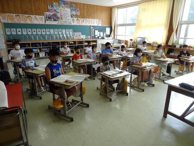 7月21日(木) 2時間目に終業式を行いました。3年生、5年生の児童による作文発表の後、校長より気持ちのこもったあいさつの仕方や通知表について、8月26日には元気に登校してきて欲しいとの話がありました。コロナ感染症対策をしながら、楽しい夏休みを過ごして欲しいです。