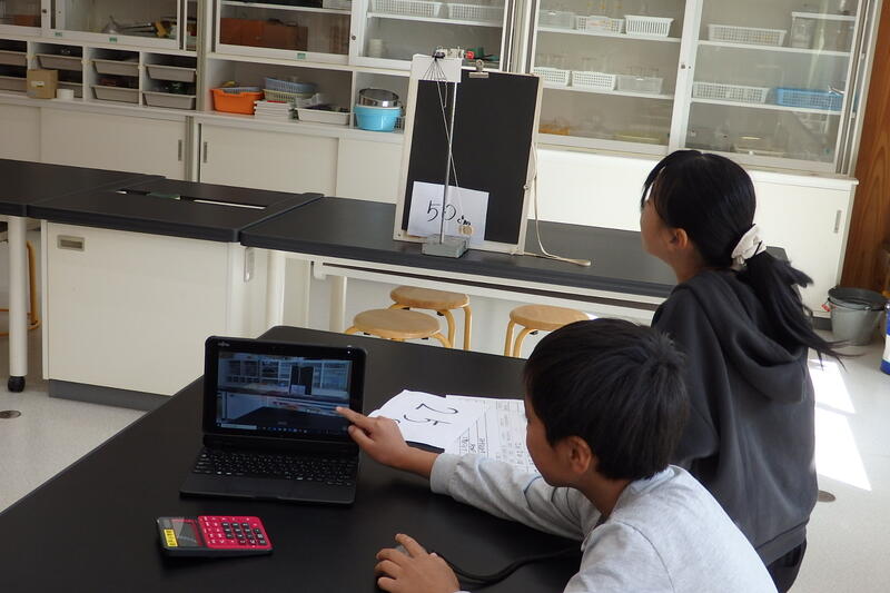 録画をもとに、1往復する時間を計算して規則性を考察します。