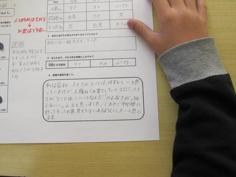 5年生と6年生の授業では「人と違うこと」について考えました。