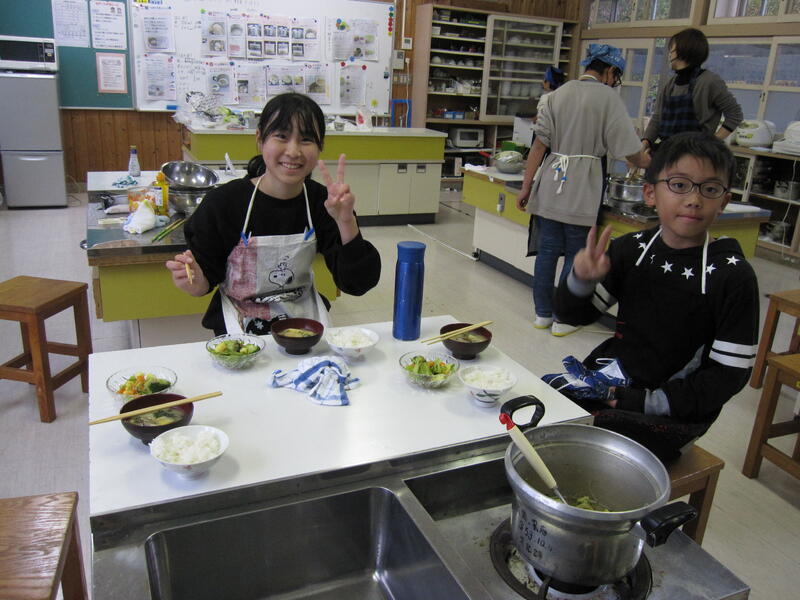 5年生が、ご飯と味噌汁を調理しました。