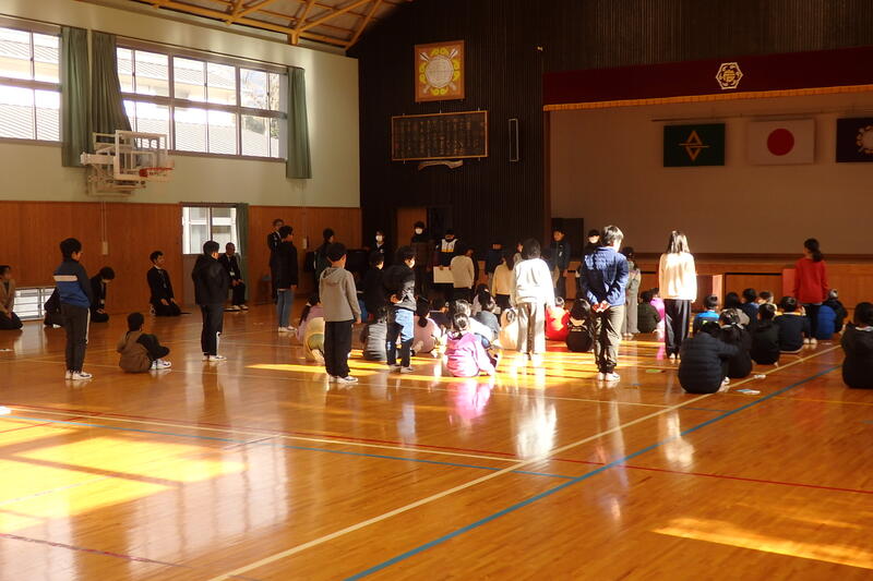 まずは、全校児童でふれあい活動をしました。