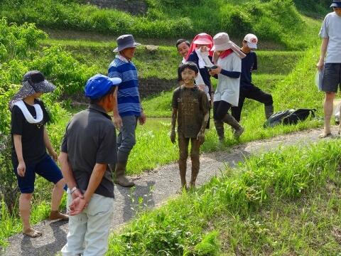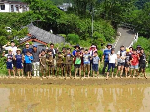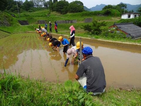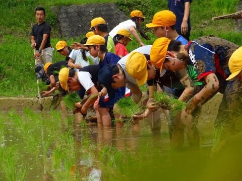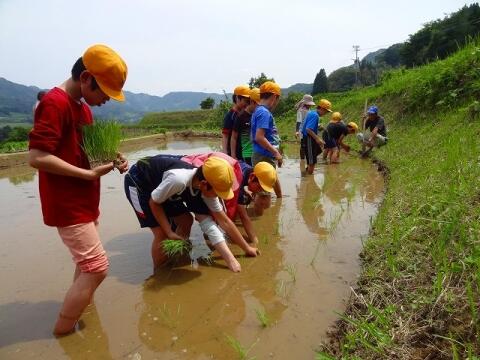 6月2日(火) 地域の佐藤重昭様のご協力で田植えをしました。保護者の方にも参加していただき、5年生17名で植えました。どろんこになりましたが、秋の稲刈りが楽しみです。