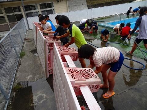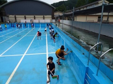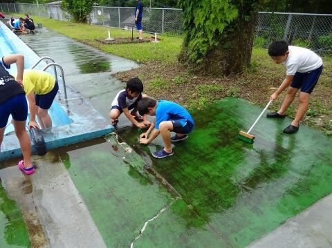 6月4日(木) 4・5・6年生でプール清掃をしました。天気がちょっと心配でしたが、きれいにすることができました。