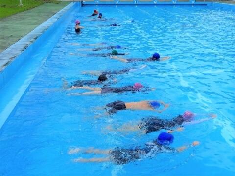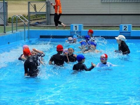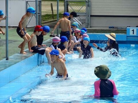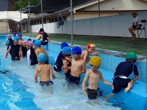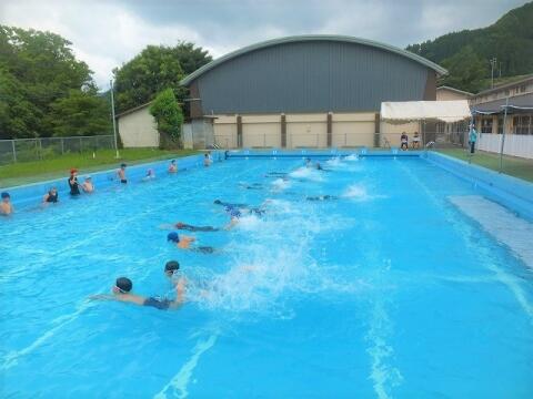 6月12日(金) 低・中・高学年毎にプール開きをしました。天気が心配されましたが、時折日差しがさし、よいプール日和となりました。