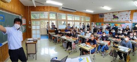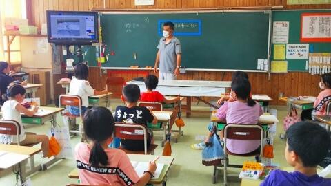7月8日(水) 5時間目の3年社会科の授業では、JA高千穂地区の甲斐さんのご紹介で、トマト農家の馬原真悟様に来ていただき、トマト作りのお仕事についてお話をしていただきました。モニターに映るビニルハウスやトマトの映像を見ながら、子どもたちは生産者の生のお話を興味津々に聞き、ノートはメモでいっぱいでした。甲斐様、馬原様、ありがとうございました。