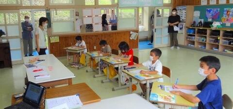6月10日(水) 1・2年生が学校内を探険しました。校長室や給食室、特別教室など、2年生が1年生を案内しながら各教室の説明をしました。各教室の入り口に貼ってあるクイズを解きながら、楽しく探検しました。元気な1年生と頼もしい2年生でした。