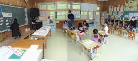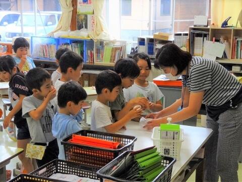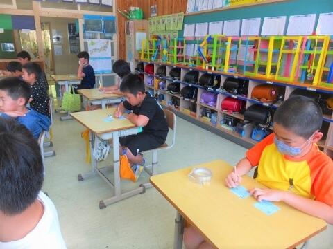 6月18日(木) 新型コロナウイルス感染症対策のため控えていたフッ化物洗口を開始しました。飛沫感染、接触感染に十分注意しながら実施しました。町の担当の方(2名)も見守りに来てくださいました。