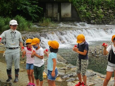 6月23日(火) 3年生の総合的な学習の時間に、学校の下を流れる岩戸川を調べに、天安河原(アマノヤスカワラ)に行きました。西臼杵支庁土木課の北原さんが岩戸川の学習のサポートをしてくださいます。これからたくさん自分たちのふるさと「岩戸」を調べていく予定です。