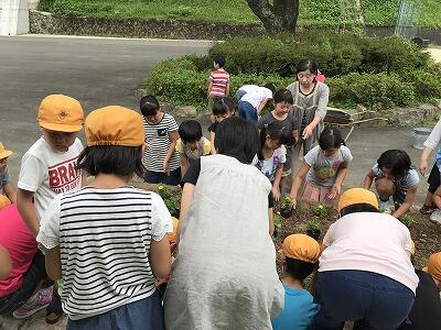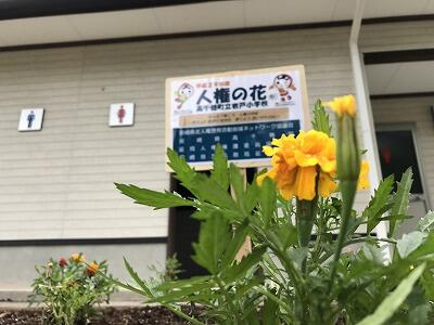 昨日、全校児童で植えたマリーゴールドとサルビアの様子です。昨日の夕立で、少し元気に見える「人権の花」です。大事に育てていきます。