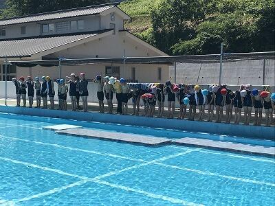 今日は、日差しが強く絶好の水泳日より。1・2年生の水泳の様子です。元気な声がプールに響いていました。『先生見て、見て』という声がプールのあちこちから聞こえてきました。プール開きの頃と比べると、逞しくなりました。