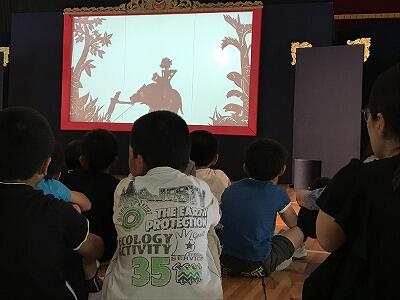 今日は劇団「風の子 九州」による演劇『バンバンとトラ』の上演がありました。3人のパワフルな演技に子どもたちは釘付けになりました。その様子です。