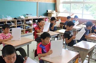 今日は5・6年対象に土砂災害防止教室が行われました。西臼杵支庁 土木課より南﨑さんに来ていただき、土砂災害についての講和がありました。真剣な態度の中にも和やかな場面もあり、楽しい学習になりました。