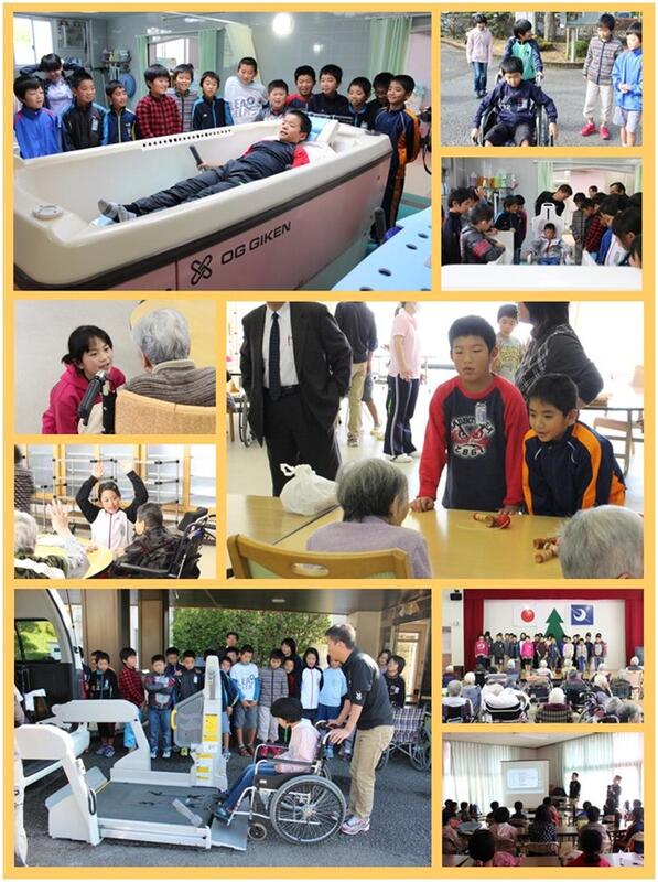11月20日(金)に5年生が総合的な学習の時間を使って、特別養護老人ホーム雲居都荘にて福祉体験活動を行いました。雲居都荘の方々の丁寧、熱心な対応でとても貴重な体験をすることができました。今回の訪問では、介護体験と交流活動の2本柱で行いました。介護体験では、お風呂の入れ方や車いすを使っての体験をすることができ、介護の大変さや心に留めておくことなどを学習しました。交流活動では、練習してきたリコーダー等の発表やグループごとに分かれてけん玉やあやとりなどを入居者の方々と行いました。どちらの活動もとても有意義なものになり、体験後には「介護の大変さややりがいがよく分かった。」「将来は福祉の仕事に就きたい気持ちが高まった。