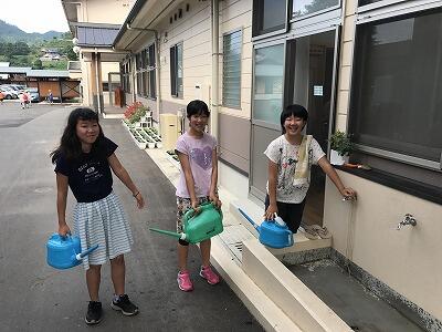 岩戸小学校の朝は子どもたちが活発にボランティア活動に取り組んでいます。外では花の水やり、運動場の草抜き、プール回りの清掃、室内では廊下のモップがけや掃き掃除などを積極的に取り組んでくれています。