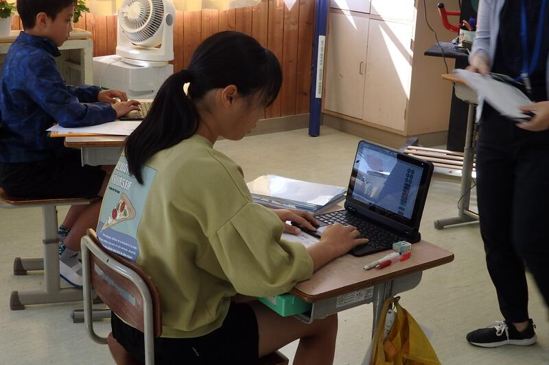 高千穂町と宮崎県の教育委員会の方々が学校を訪問し、授業を参観されました。