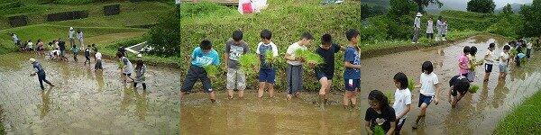 6月11日、今年も佐藤重昭様宅の田んぼをお借りして、5年生が田植えをしました。