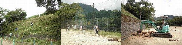 たくさんの方々が刈払い機を持って来てくださり、敷地内外の斜面やグランドの除草作業を