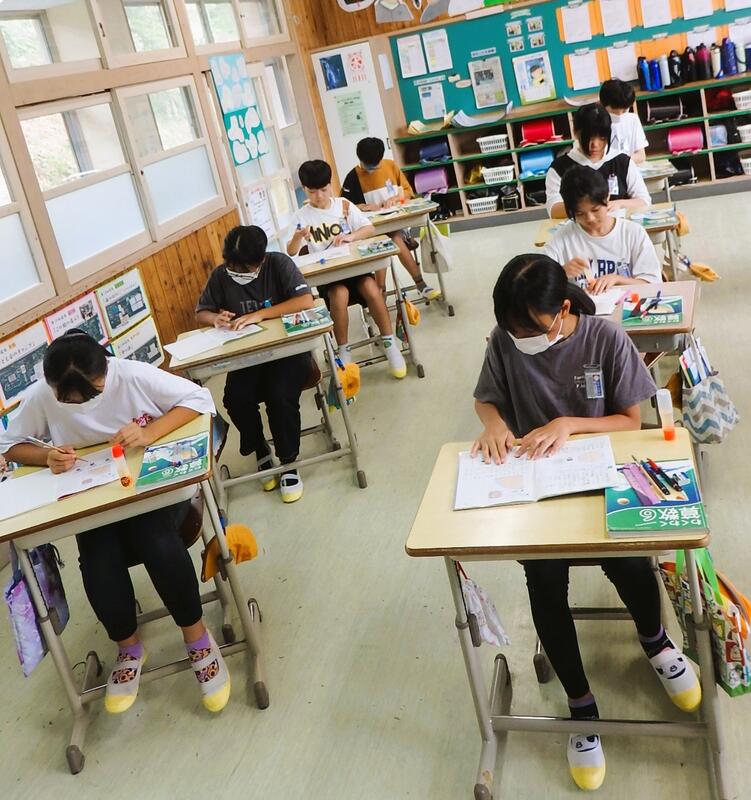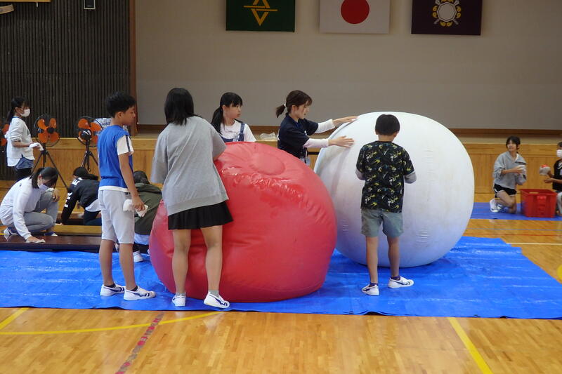 先生や6年生に手伝ってもらいながら、がんばっています。