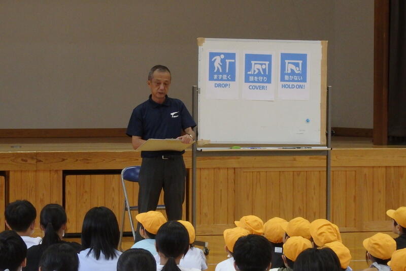 校長先生が、関東大震災等、過去の震災についてふれ、命を守るためにはどうすればよいか話されました。