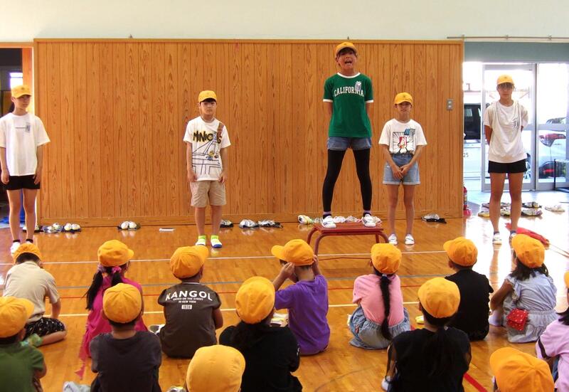 ラジオ体操の指揮は、校長先生の指導を昼休みに受けて臨んでいます。