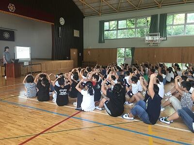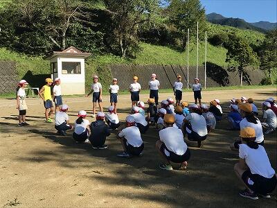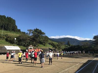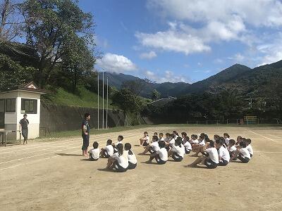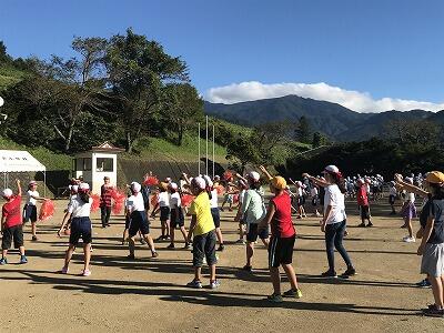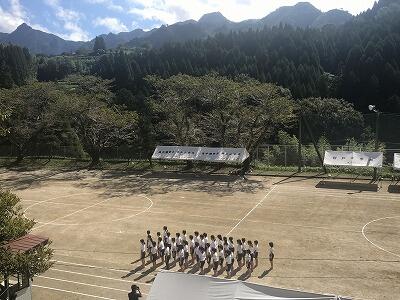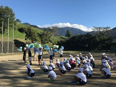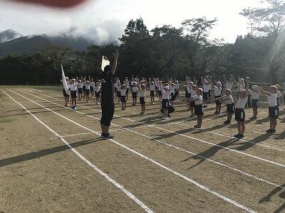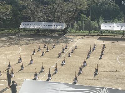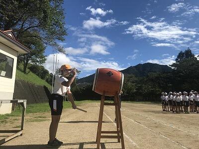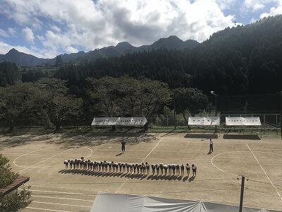 9月10日(火)朝の時間を使って応援練習がありました。白団も赤団も工夫をこらして団員に応援を説明し、練習が始まりました。今日は古祖母もよく見えました。