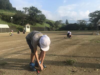 9月11日(水)運動会に向けての朝のボランティアが始まりました。グランドの草抜きを朝登校して行ってくれています。もちろん毎日のボランティアも頑張ってくれています。