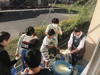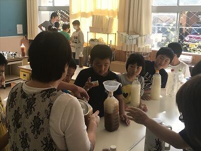 10月11日(金)今日は、岩戸商工会婦人部の方々に来ていただき、「EM菌の効果に関する授業」をしていただきました。今回は5年生がEM菌液をつくりました。11月5日(火)にプールに投入する予定です。