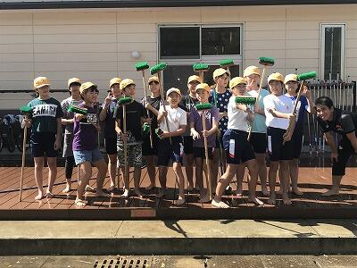 10月11日(金)今日6年生がウッドデッキの清掃をしてくれました。水が少し冷たくなりましたが、ピカピカに磨き上げてくれました。