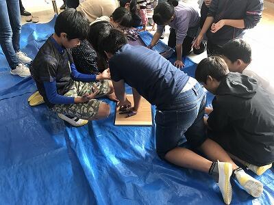 6年生ウッドデッキ清掃