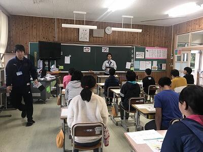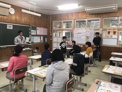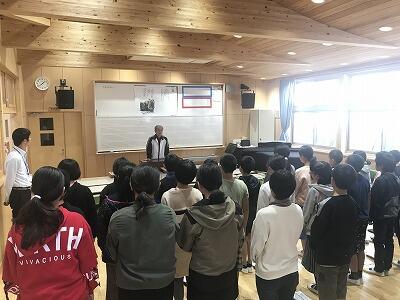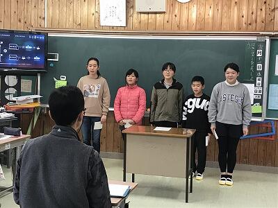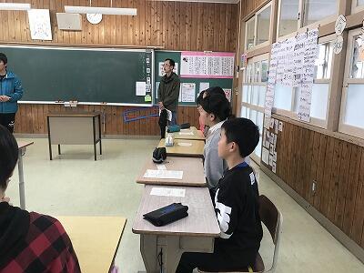 12月11日(水)に6年生が岩戸の幸福論という授業を行いました。町作り協議会の会長さんに来ていただき6年生の発表を聞いていただきました。