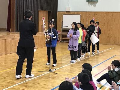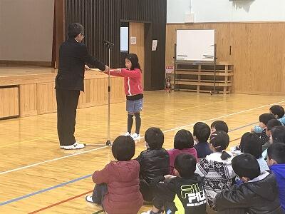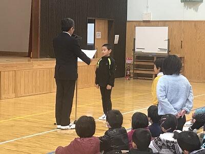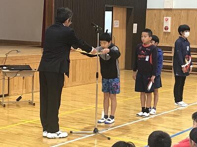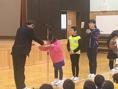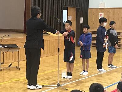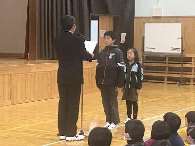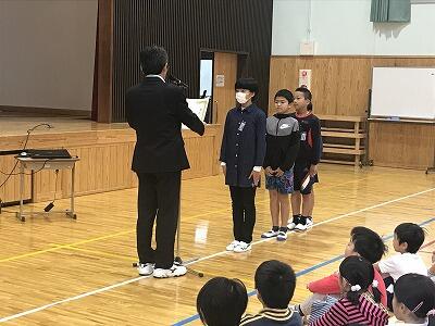12月3日(火)12月の全校朝会と表彰が行われました。校長先生からは「失敗は宝物」のお話があり、2学期を締めくくりましょうとお話がありました。表彰では先日行われた持久走大会の表彰もありました。