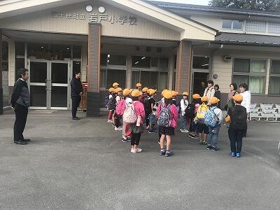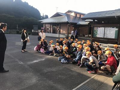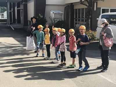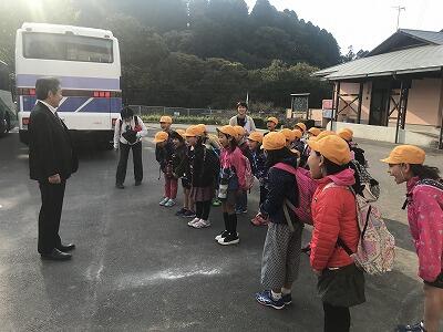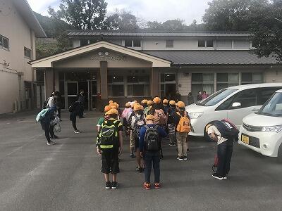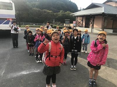 11月7日(木)今日は秋の遠足です。1・2年生は阿蘇方面にきます。3・4年生は延岡のかまぼこ工場に行きます。5年生は高千穂峡・高千穂神社に行きます。今日は朝からいつもにもまして元気なあいさつができていました。