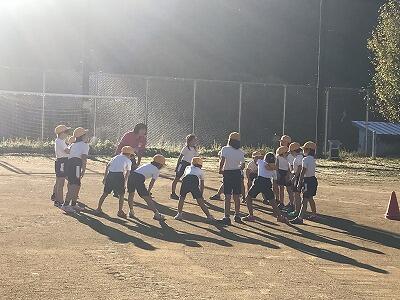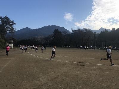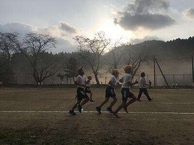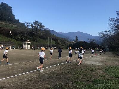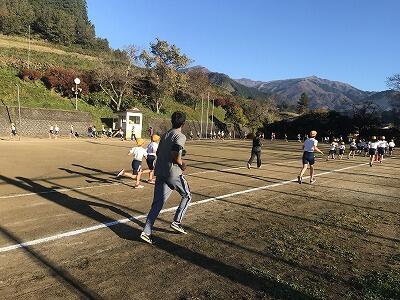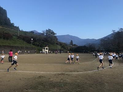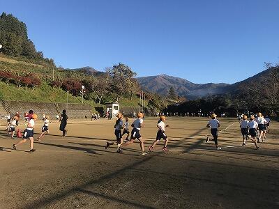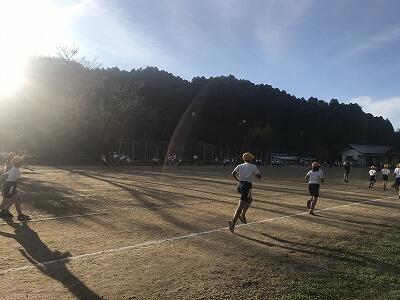 11月15日(金)朝の体力アップの様子です。11月22日(金)の持久走大会に向けて子ども達が頑張っています!