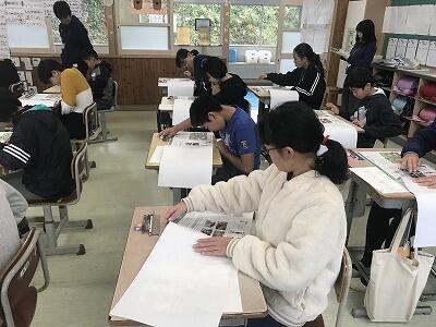 10月10日(木)今日は6年生の読書感想画の様子を紹介します。黙々と取り組む6年生です。