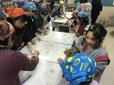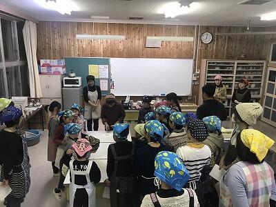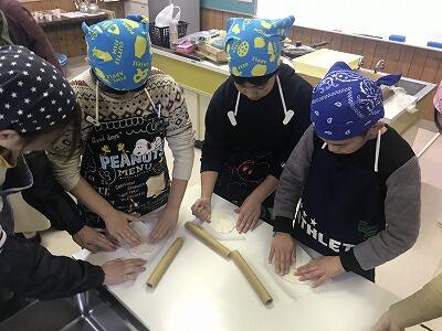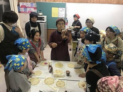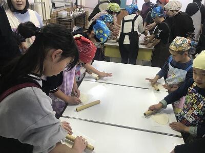 12月4日(水)第3回家庭教育学級が開催されました。「フライパンでピザ作り体験」教室と題して、そよ風工房の佐藤孝子さんと坂本佐代美さんを講師に迎え米粉でピザを作りました。32名の参加があり、にぎやかな体験教室になりました。