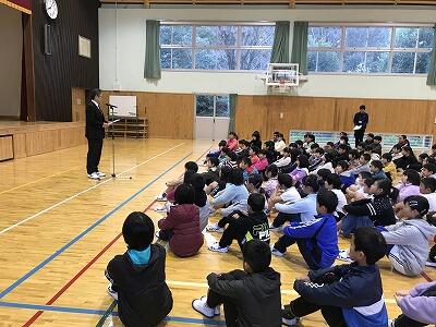 12月6日(金)不審者対応の集会が行われました!冬休みまで1ヶ月を切りました。安全に毎日の生活を送るために「いかのおすし」一人前のお話がありました。