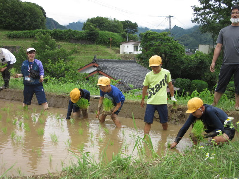 地域の方の水田をお借りして、手植えの体験をさせていただきました。