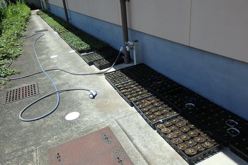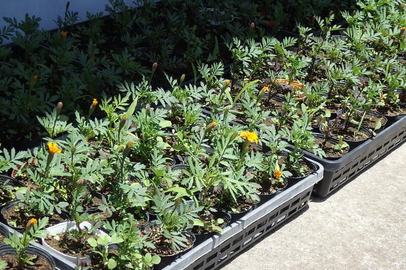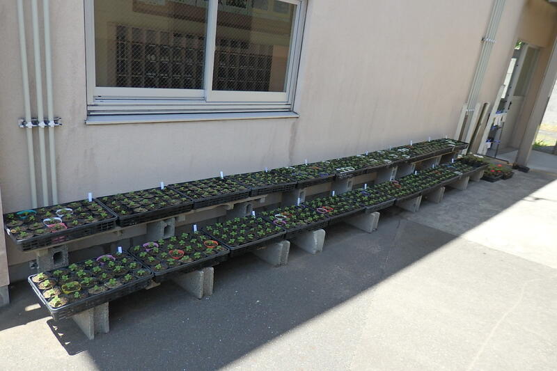 いま、岩戸小にはたくさんの花の苗があります。